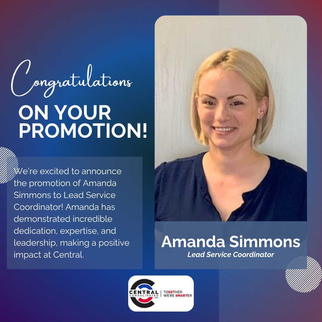 Central Consolidated is proud to announce the promotion of Amanda Simons to Lead Service Coordinator